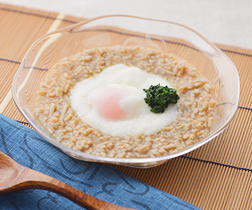 くず粉でつゆにとろみをつけることで麺と絡みやすくなり、飲み込みもサポート。つゆは電子レンジで1人分からでも簡単につくることができます。温泉卵でたんぱく質、とろろでエネルギーアップに。