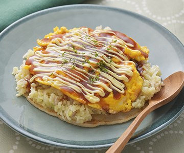 とろろを多めに加えたふわとろ生地に、麺などの具材は細かくして電子レンジで加熱することで、歯ぐきでつぶせるやわらかさになります。卵にマヨネーズを加えてふわとろに仕上げます。たっぷりのお好み焼きソースとマヨネーズで飲み込みやすくなるだけでなく、エネルギーが摂れるのもポイントです。
